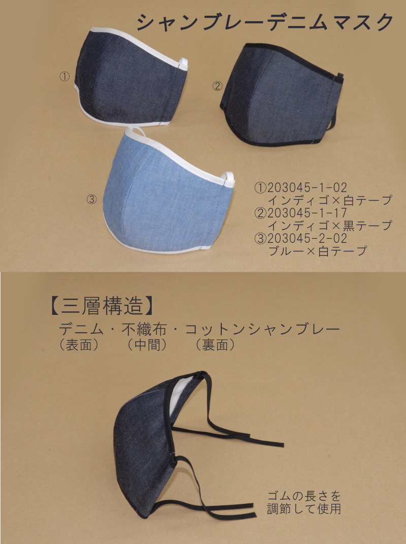 - <不織布入り>シャンブレーデニムマスク