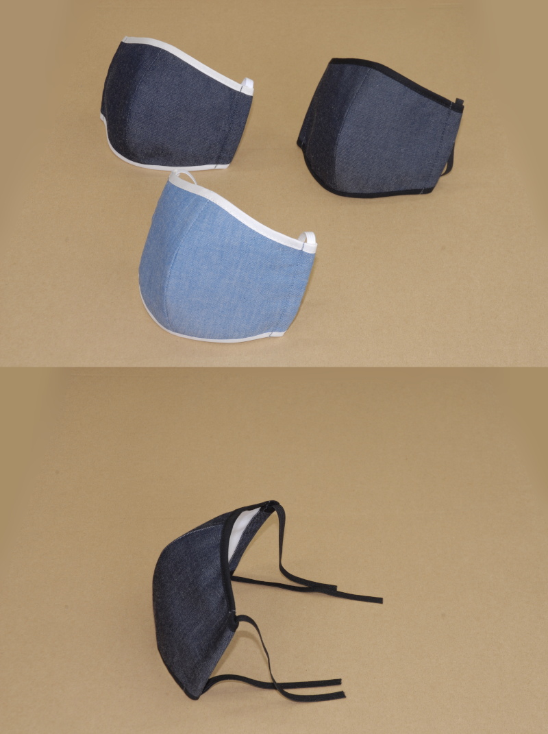 - □¥1100(税別)(送料別) □紳士・婦人用 □ゴムは調節して結んでいただき、結び目が見えないように縫い代に入れてください □【三層構造】表面(デニム)、中間(不織布)、裏面(コットン) □本体生地(裏表とも綿100% □不織布混率(ポリエステル50%:ナイロン50%) □生地を化学検査協会提出済 □日本製 ■このマスクは飛沫防止のためのマスクです ■医療用のマスクではありません ■洗って何度でも再使用可能です(手洗いまたはネット洗いをおすすめ) ■つけ心地がよく、息がしやすいマスクです